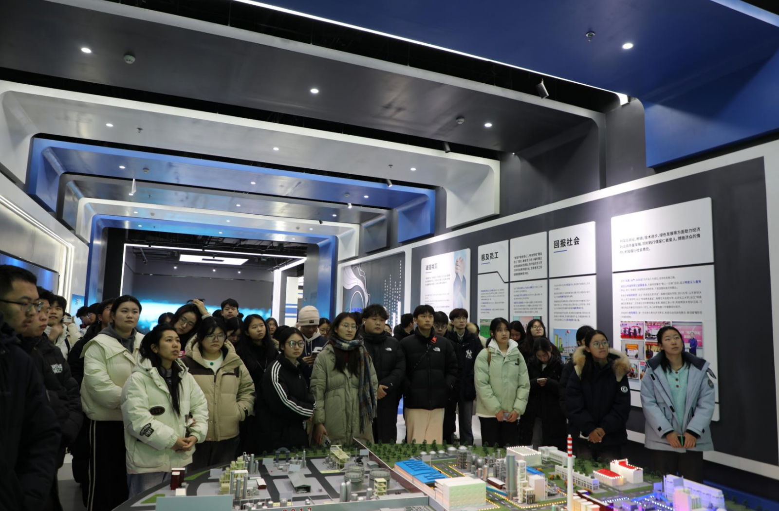 会后,大学生们乘车到明泉集团章丘园区,深入明化公司中控室与明泉特材研发楼,近距离观摩智能化生产流程,了解安全环保管理体系,感受科技赋能下传统产业转型升级的发展成果。